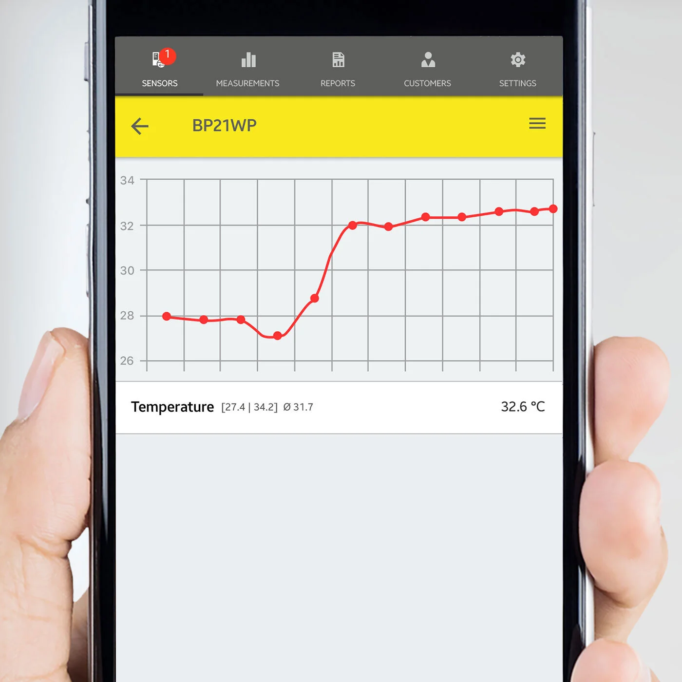 The MultiMeasure Mobile app indicates all the values measured by the BP21WP easily legible on the display; besides the current measured value you can find minimum, maximum and average values.